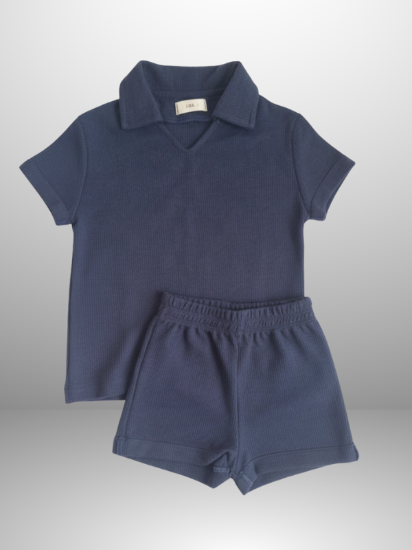 A blusa polo traz gola italiana delicada e corte clássico, enquanto o short com elástico embutido proporciona conforto e praticidade.