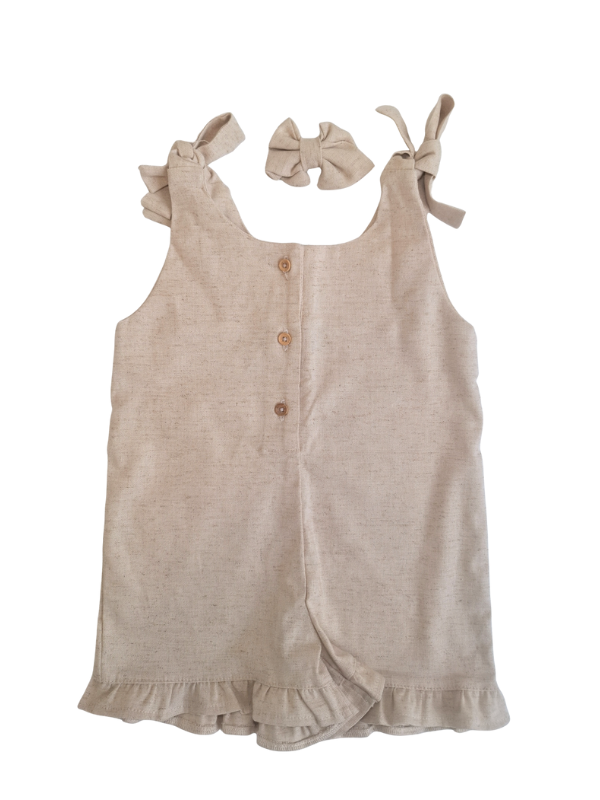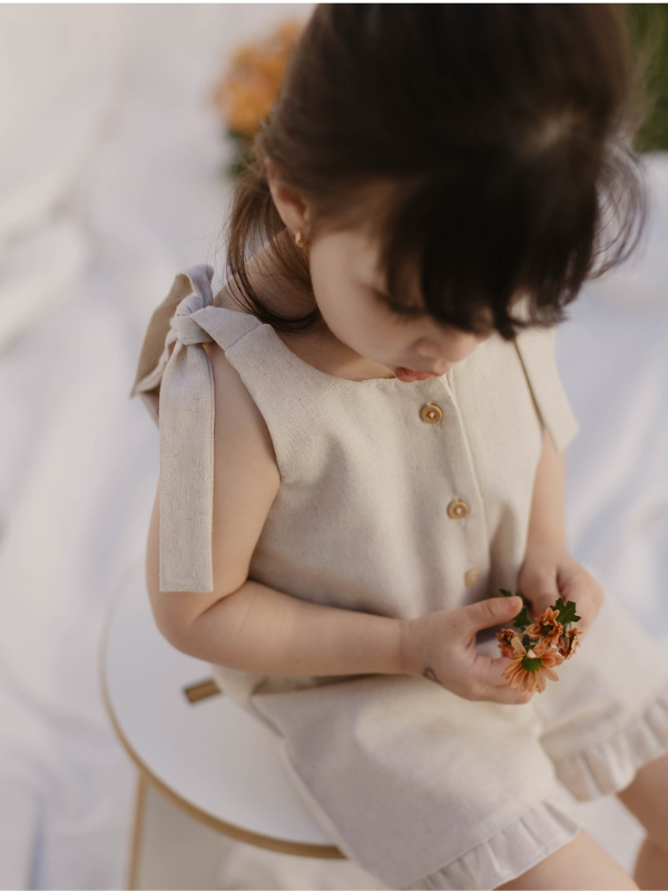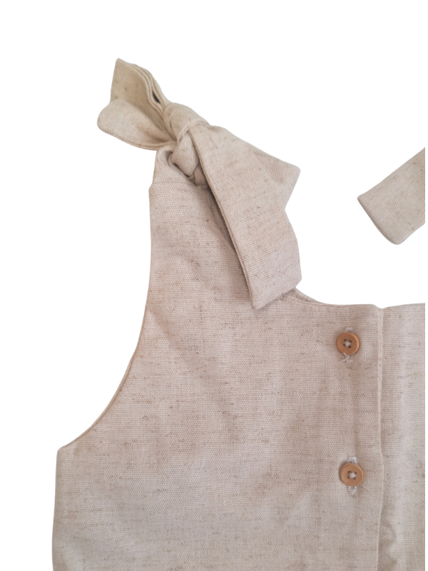 O Macaquinho Brisa de Infância foi pensado para oferecer conforto e liberdade em cada movimento. Confeccionado em linho com viscose, possui toque suave e textura natural, ideal para dias ensolarados.