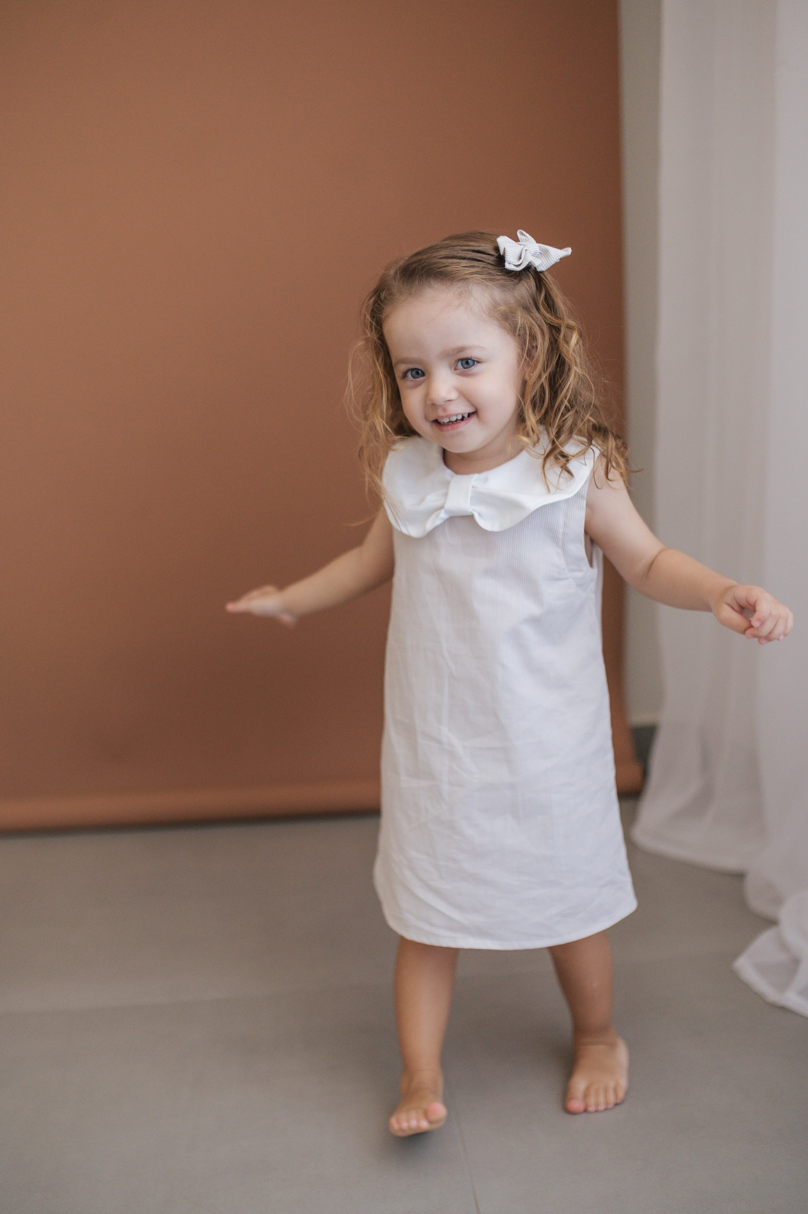 Confeccionado em tricoline 100% algodão, possui toque leve e textura macia, ideal para acompanhar o movimento das pequenas com delicadeza.